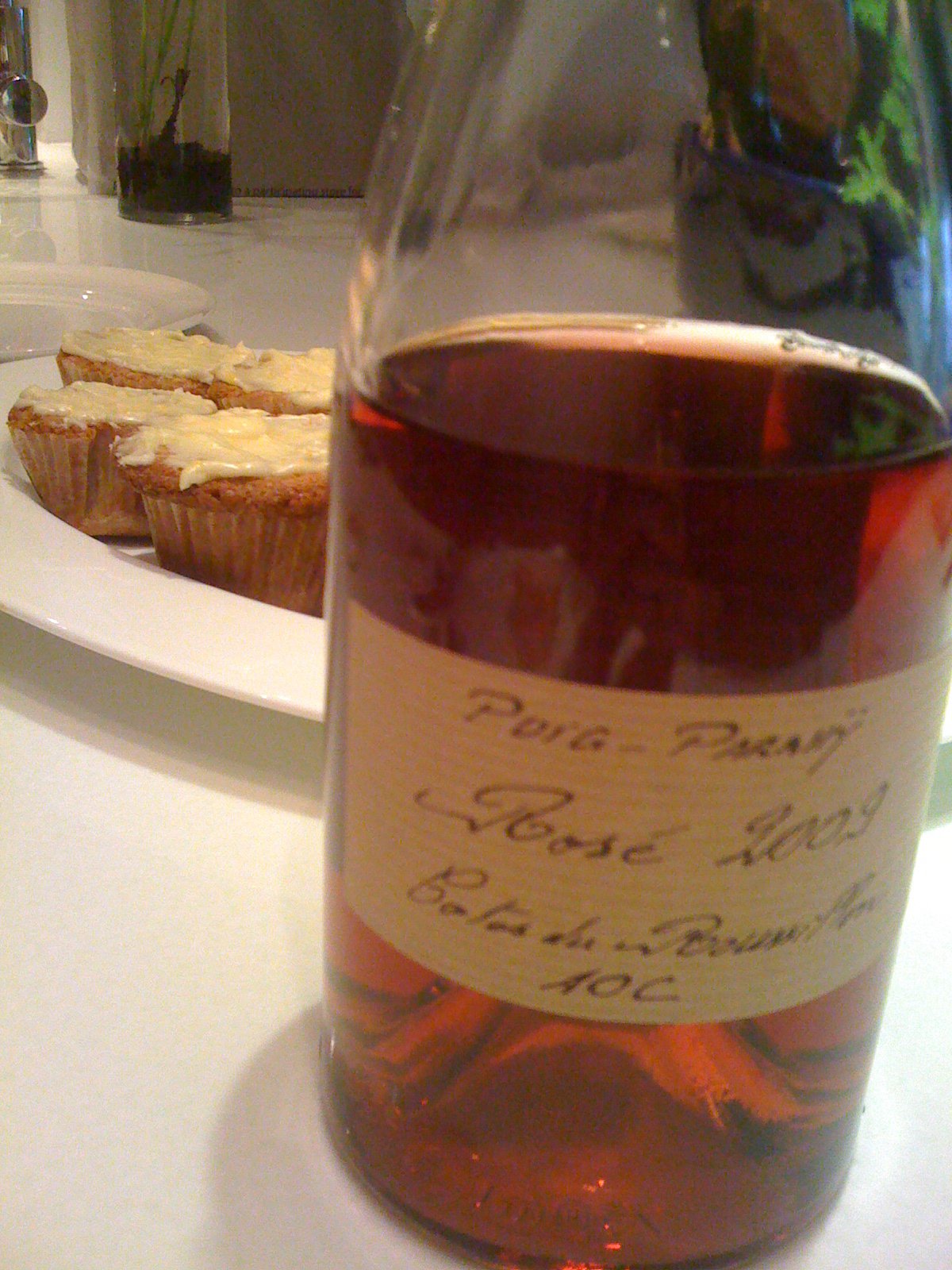 2) I’m in a writing group and though I’d already celebrated my birthday with the guys, one person couldn’t make it. So the next time we met she had baked me these amazing homemade cupcakes with awesome homemade lemon icing. They went pretty well with the Puig-Parahy Cotes du Rousillon I’d brought. I had two, and of course two glasses to accompany them!
