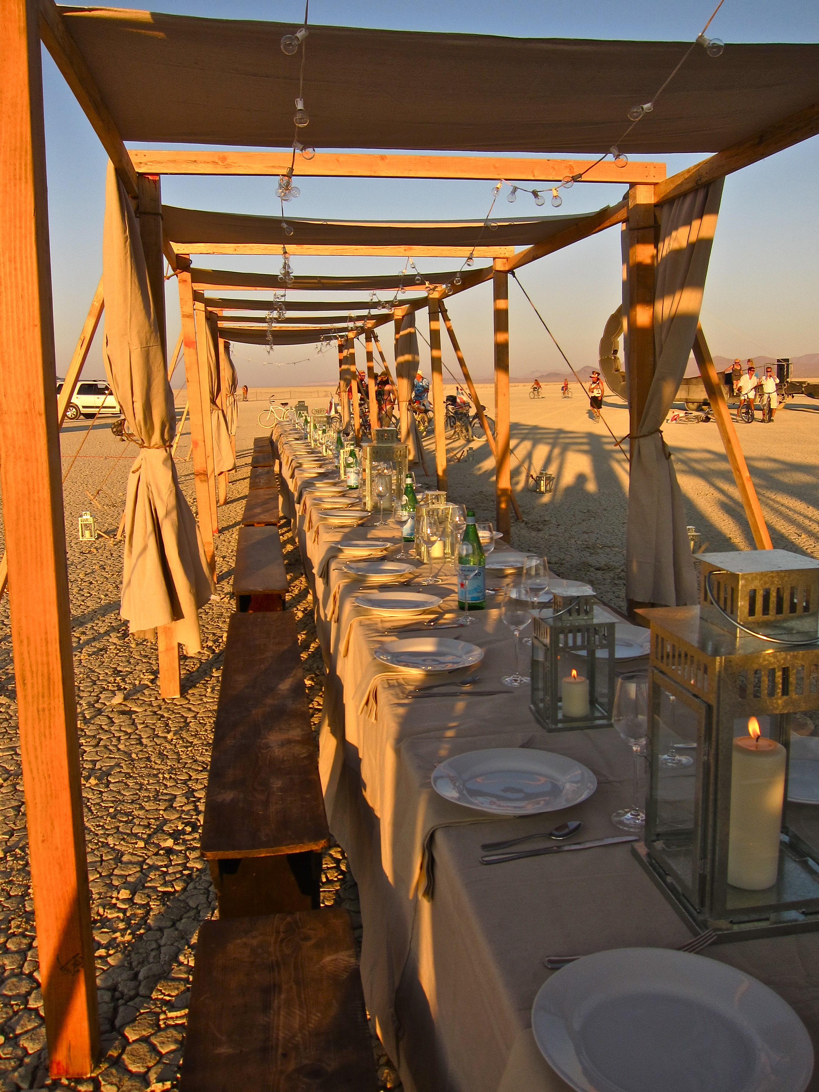 I’ve never been to any festival in the desert, including Coachella. If I’m going to a grimy, heat-filled and crowded all-day jam fest, I want to leave at the end of the day, shower well and kick back in style with some refreshing champs. Apparently, I can now do that at Burning Man of all places.