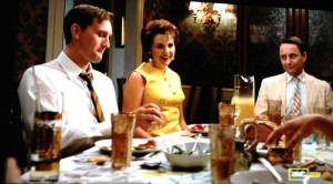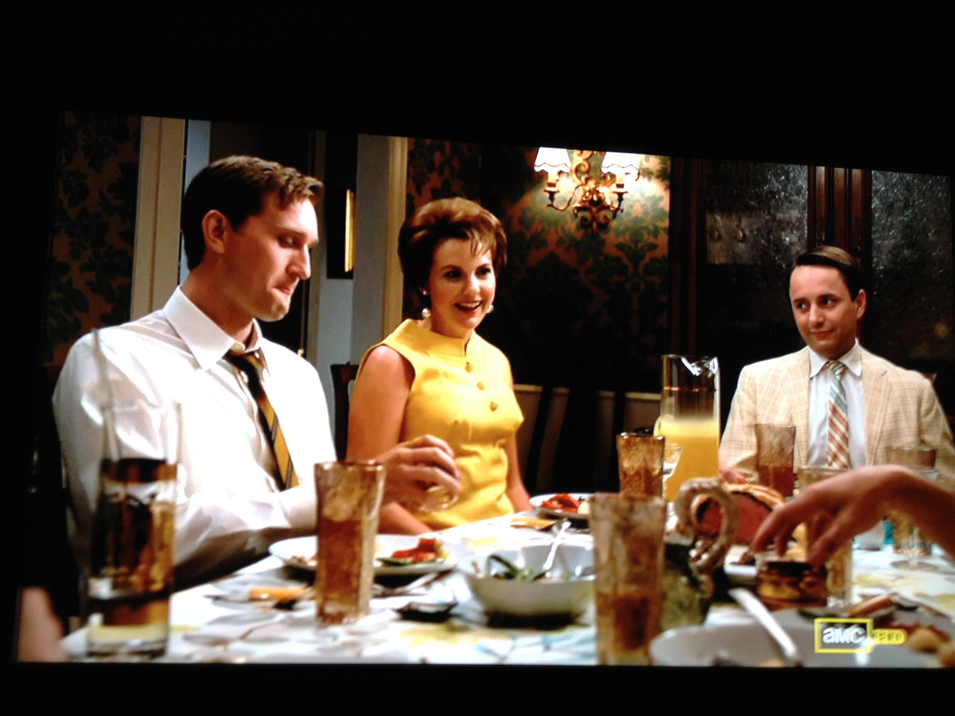 On closer inspection, only the Jaguar guy and Pete were drinking wine (Jaguar Guy’s wine glass behind the lamp and one in front of Pete):