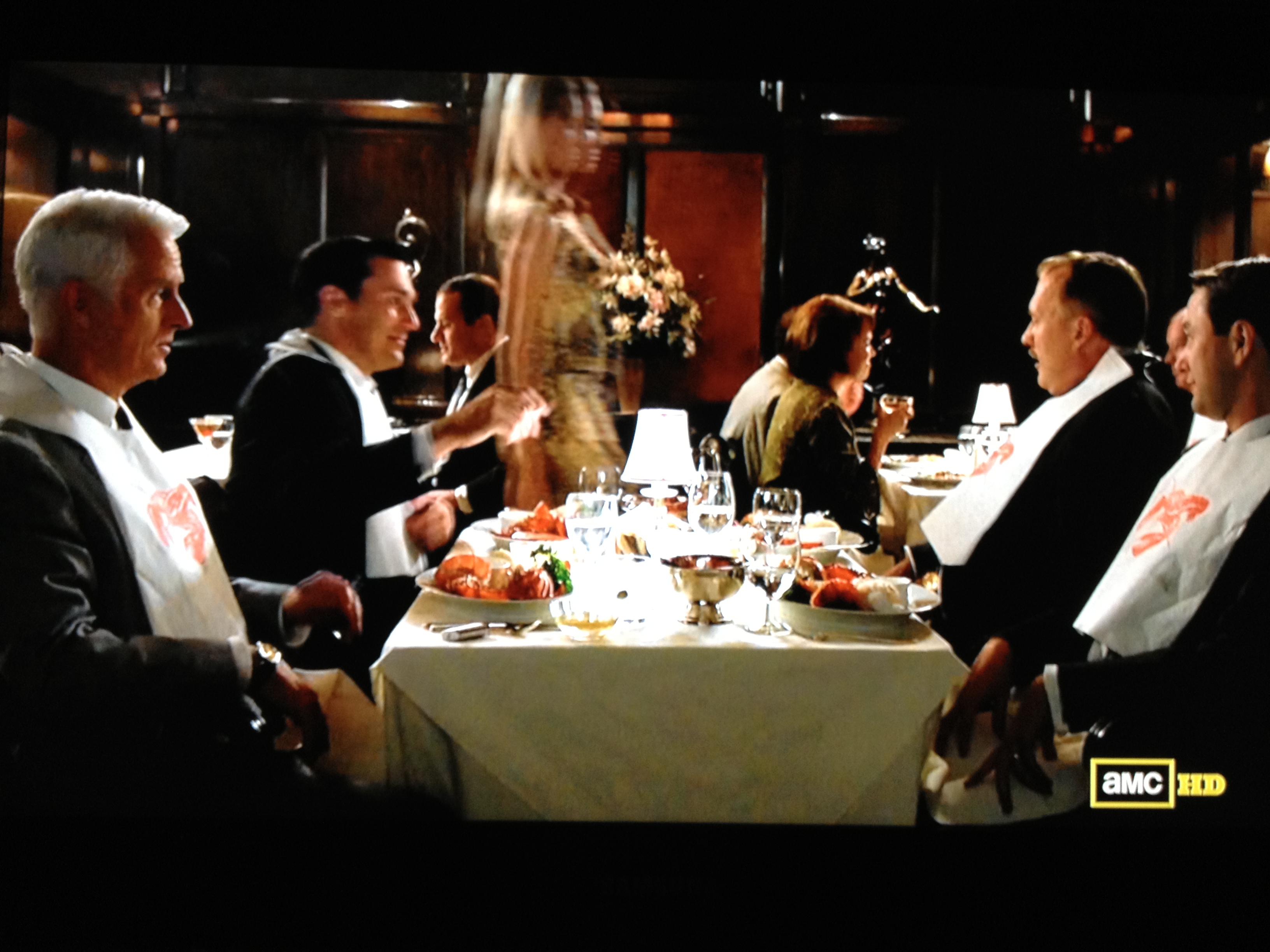 No, this episode we had to leave it to the dudes at dinner. Accompanying the cute little lobster bibs, wine finally made an appearance!