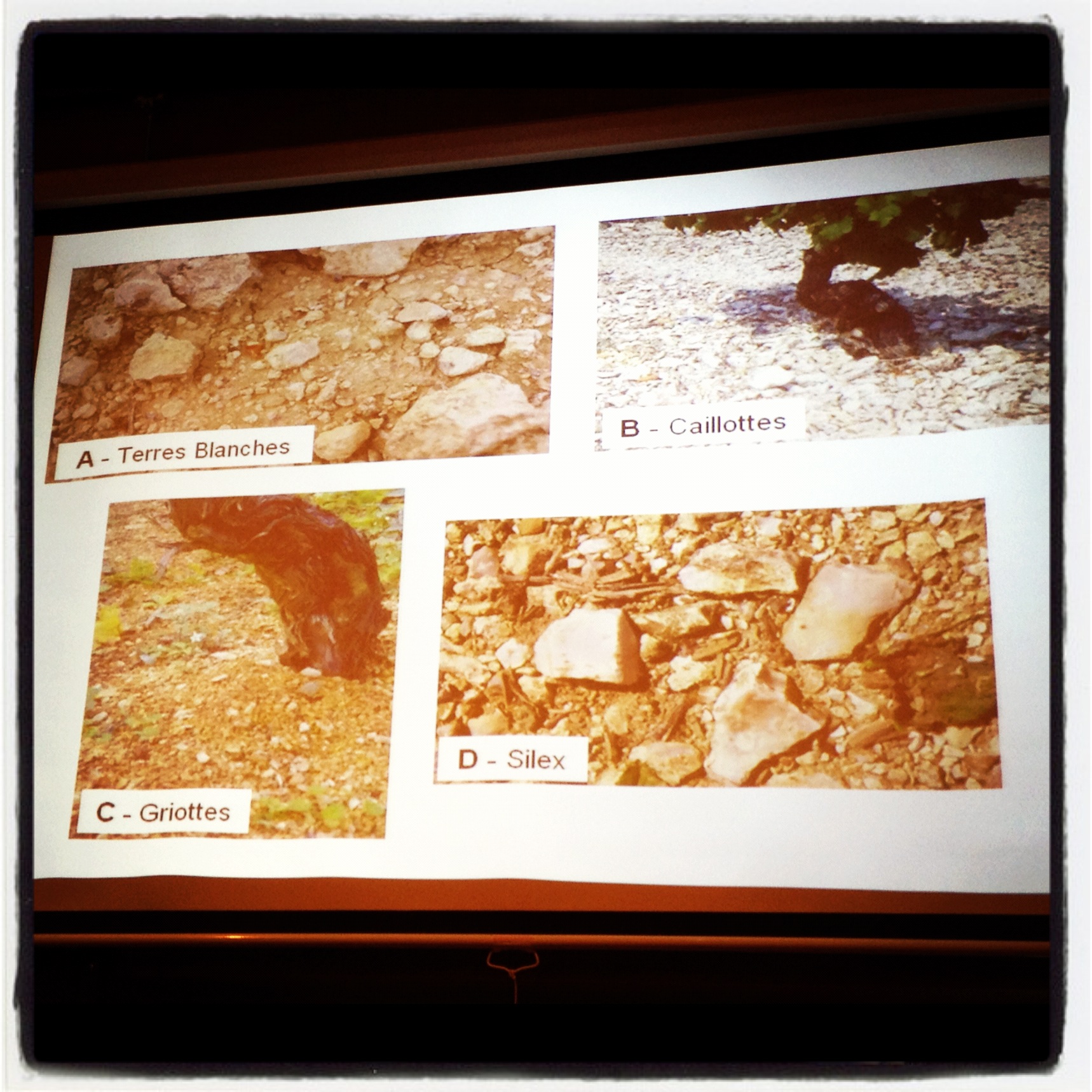 - Caillottes: chalk and rocks, which makes the wine fruity. Much more intense, riper fruit than the Terre Blanches sample, with less acid.