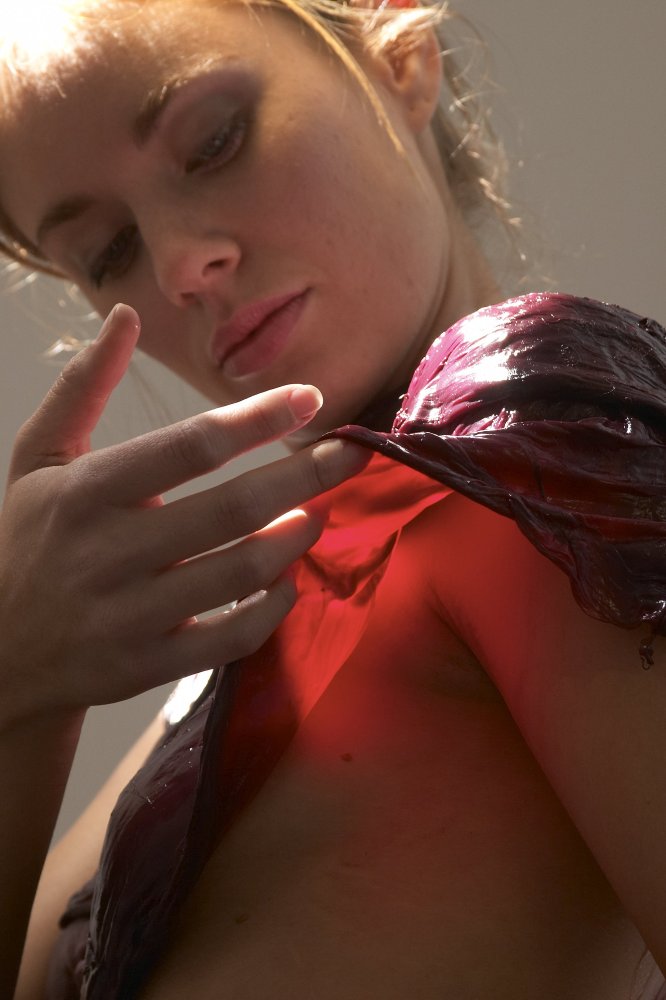 They say that this is how it’s made: vats of wine produce cellulose, which forms the material in cell walls of plants. Layers of this slimy stuff are then put onto a mannequin, and when the dress takes shape the mannequin is deflated. Depending on the kind of wine used, the delicate fabric that’s created will either be red (red wine) or translucent (white wine or beer). Some have said the fabric actually smells like wine and feels like “sludge” when wet, and that if the dress dries up the fabric will tear. What??? How could you ever wear this? You’d reek. And be naked.
