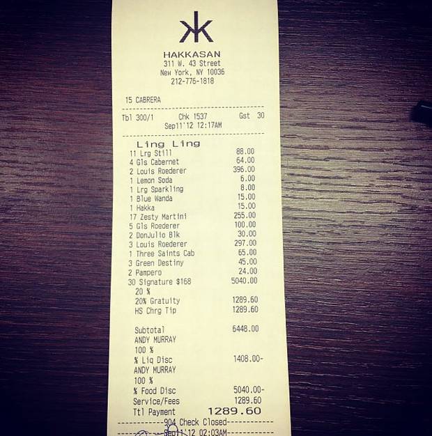 I know the US Open ended a while ago, but I just read about this. After Andy Murray won, he went to celebrate in NYC at Hakkasan. I haven’t been yet but I have been to the one in London and loooved it. It was a while ago so I don’t remember what I drank, but Murray’s posse probably recalls their drinks.