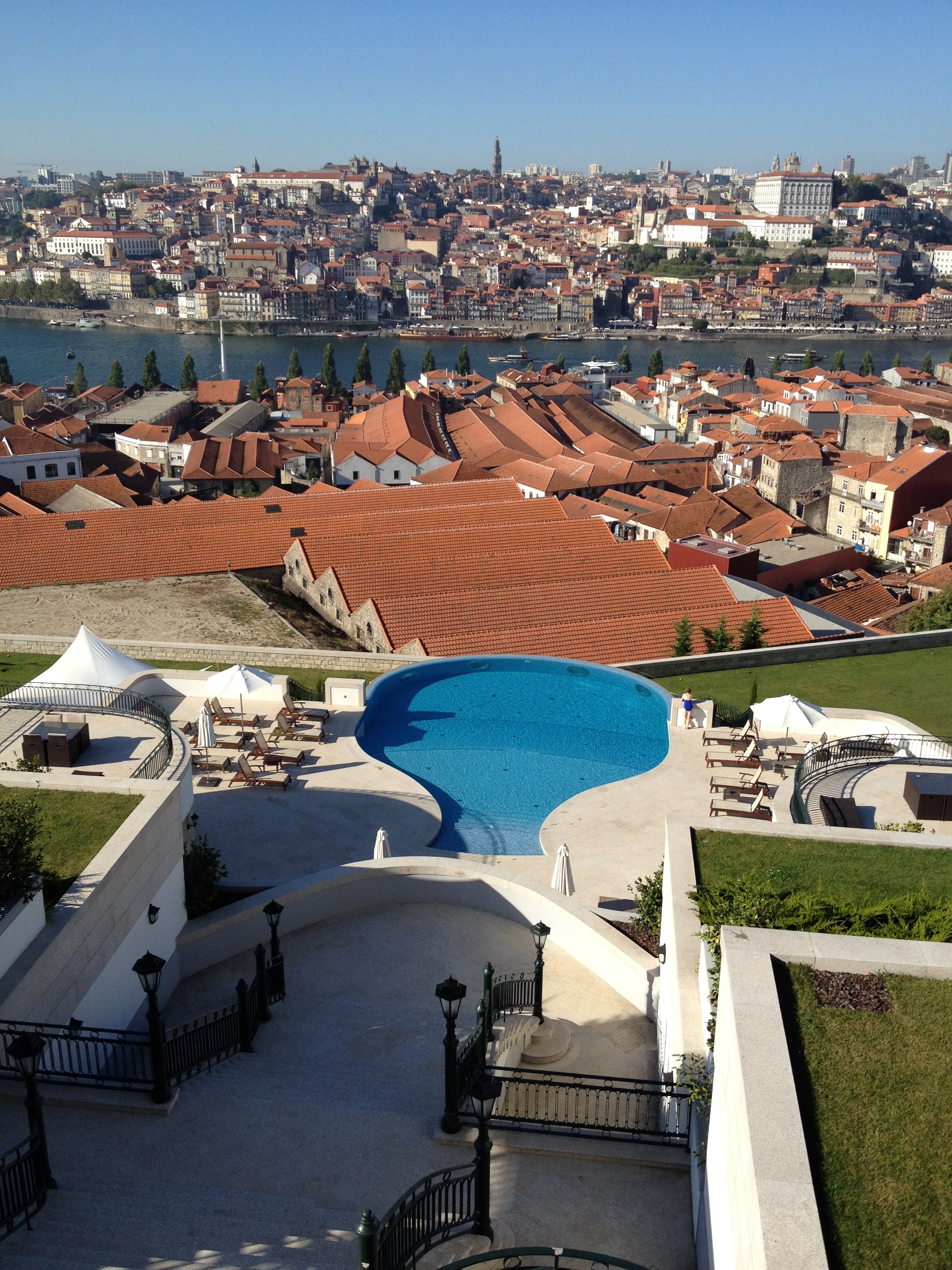 Just landed in Portugal this morning and staying at the Yeatman, aka awesomest place ever. It’s a “wine hotel”: every room is named after a wine producer, they have 82 wines by the glass, and the pool is shaped like a decanter!!!