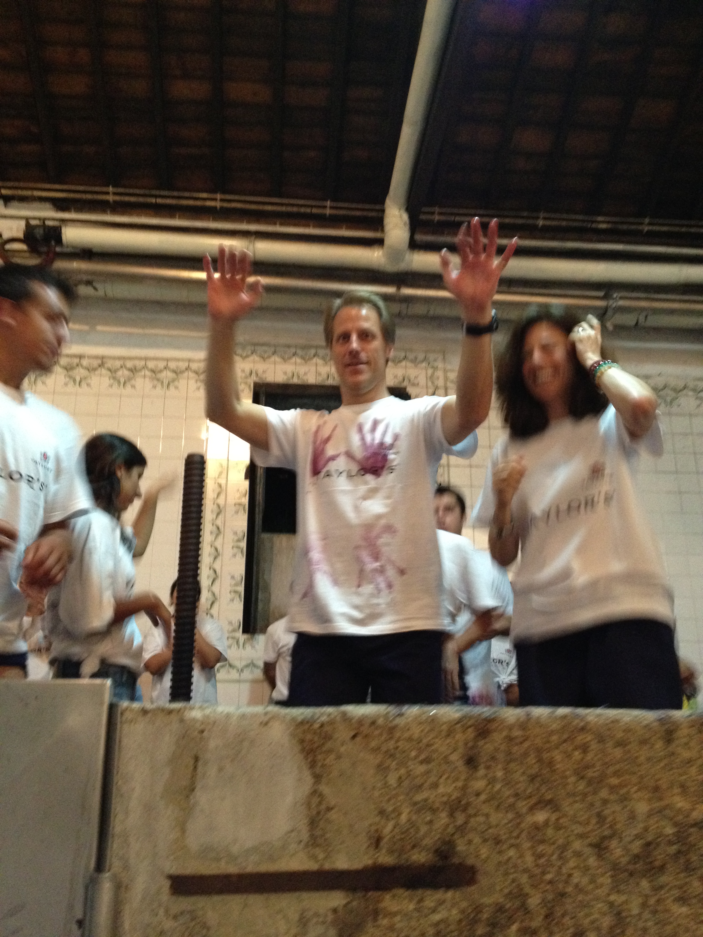 First comes the cort – this is the first breaking of the grape skins. Treaders get into a big granite vat called at lagar and the juice, skins, stems and seeds come all the way up to your knees.