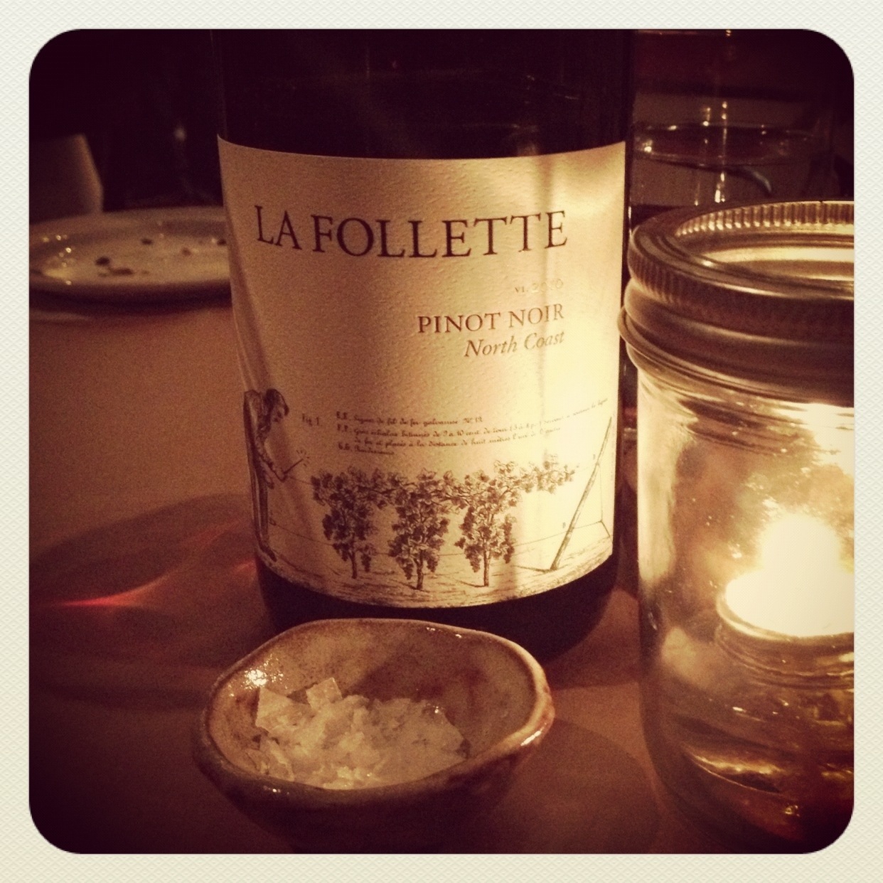 Happy first night in Napa with one of my favorite Pinot Noir producers, even if they’re in Sonoma… My absolute fave is the Manchester Ridge Vineyard one, but this was very tangy and cranberry, and had great acid for food pairing.