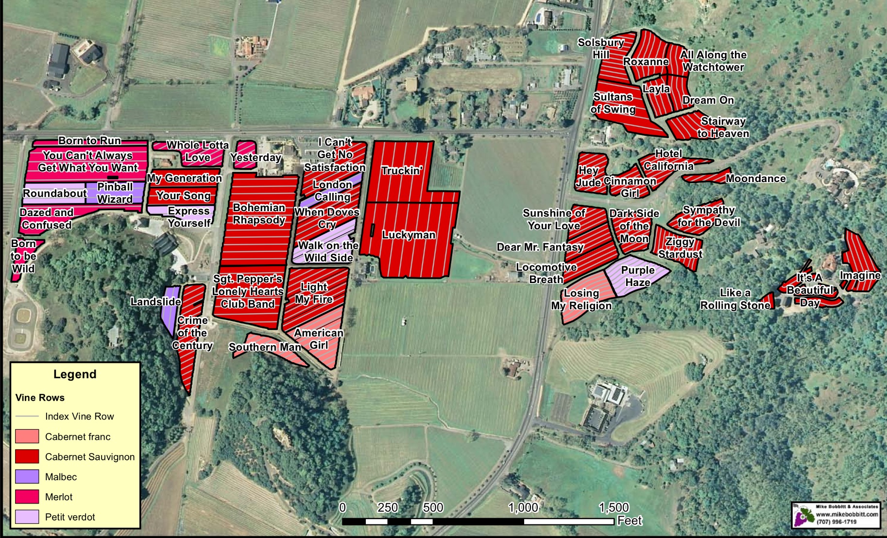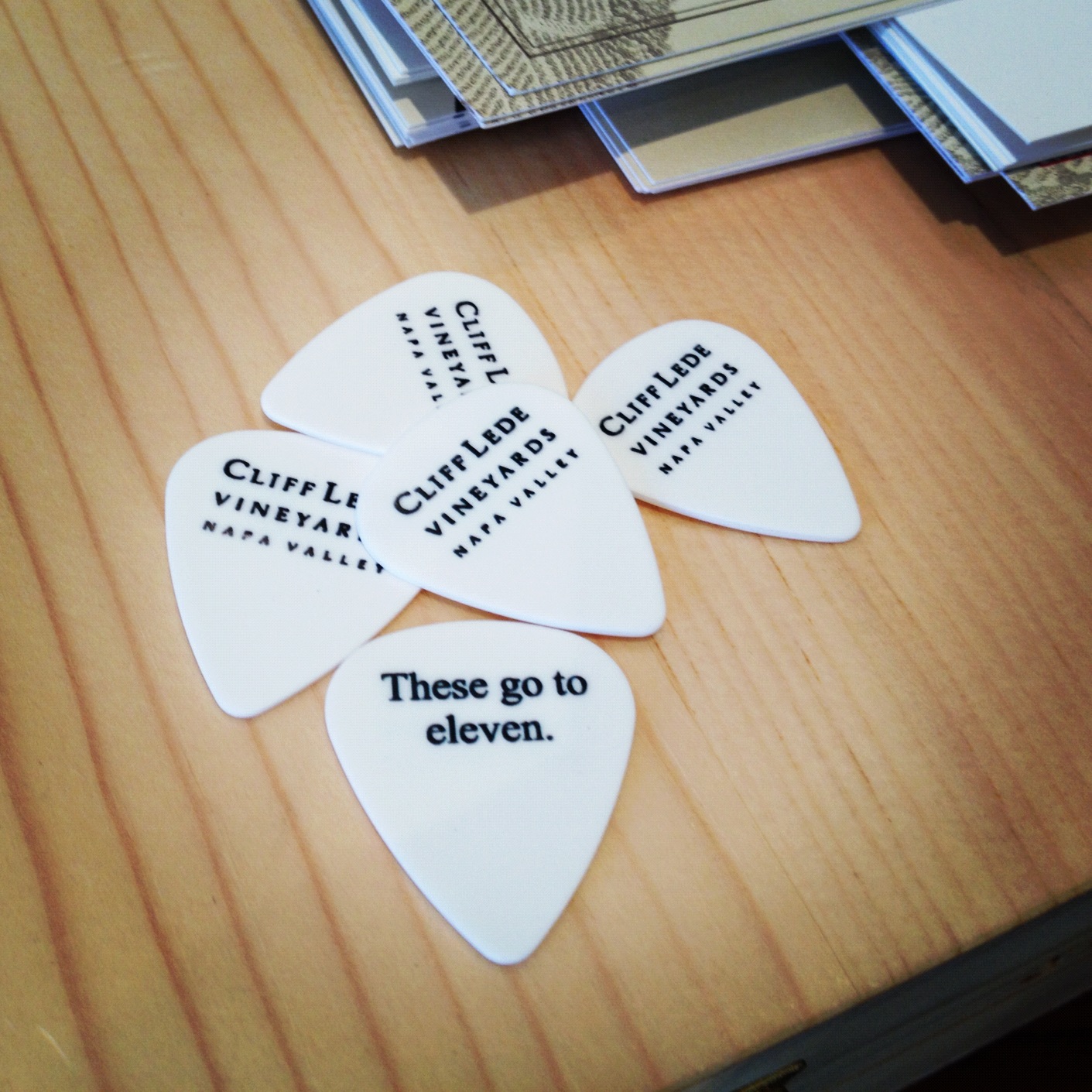 Anything anything that incorporates Led Zeppelin and wine I am IN. They’ve named all of their vineyards after rock songs – see if you know all of them on the map – and they also give you these awesome Spinal Tappy guitar picks: