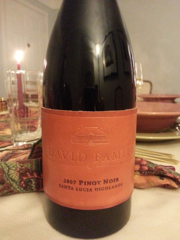 “From there onto the main course (and sides) with my favorite Pinot, David Family.”