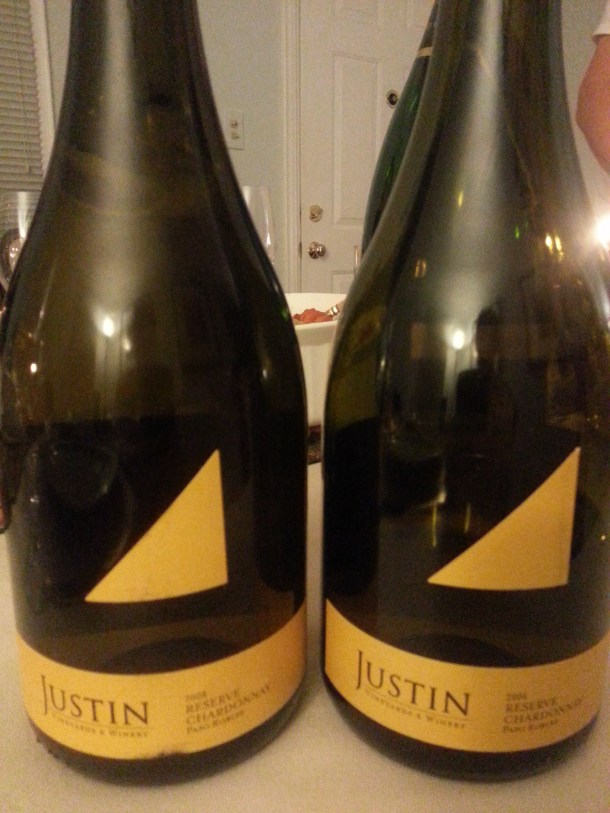 “Then moved to the soup course and had an interesting tasting of Justin ’08 & ’06 Reserve Chardonnays.”