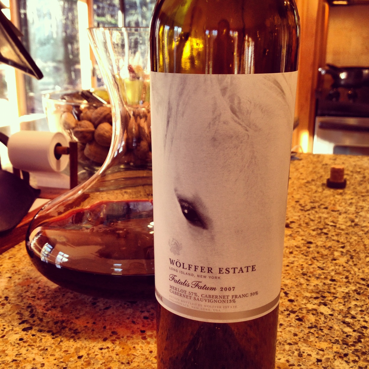 We did our Fiacre grower champagne, Breggo Pinot Gris and this Wolffer Meritage (2007, decanted but still felt young).