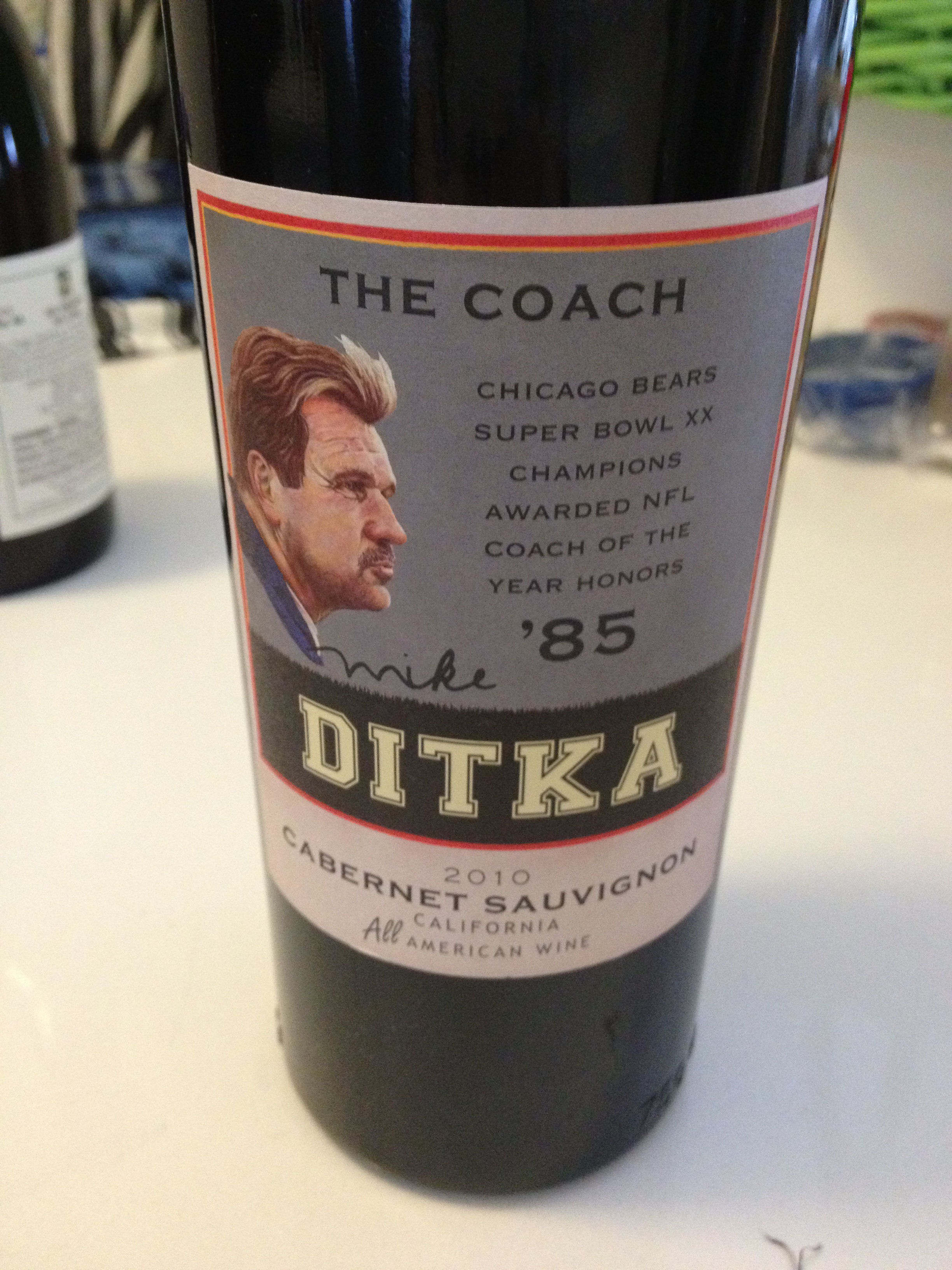 play: “The Coach” Cabernet Sauvignon. Ditka has a whole line of wines, each named after a phase of his career (others are “The Player,” “The Hall of Famer,” and “The Icon”).