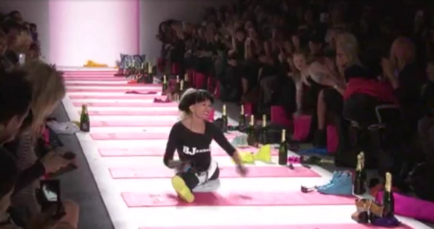 Betsey led an aerobics class on the runway, which befuddled a lot of live Tweeters at first though they got very excited when everyone picked up the bubbly.