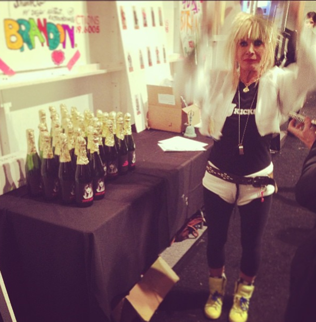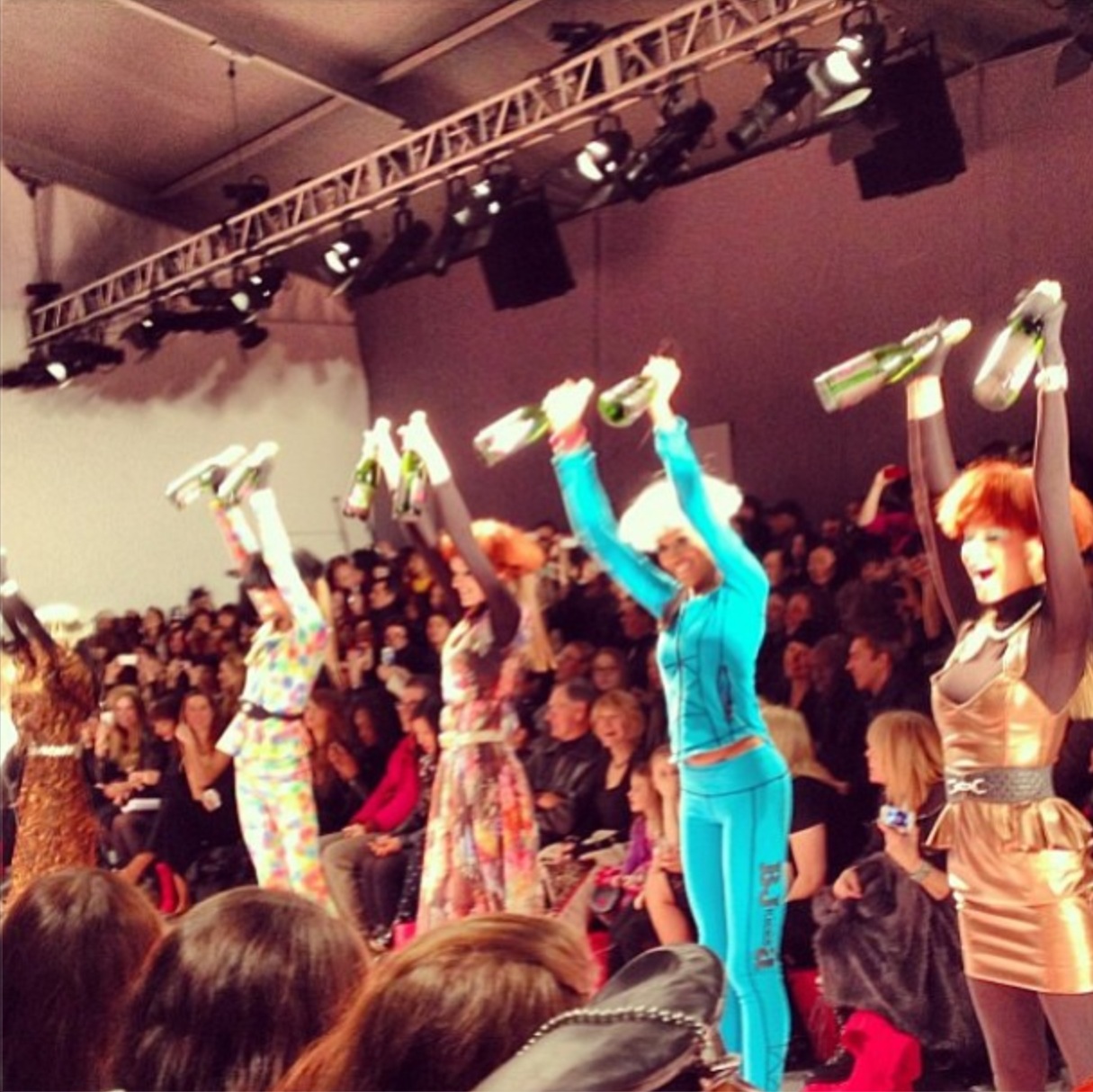 Although you see a ton of champagne at Fashion Week, you usually have to wait til the after-party. Not last night. Betsey Johnson debuted her new activewear line and had the models use bottles of bubbly as barbells! Grapefriend died.