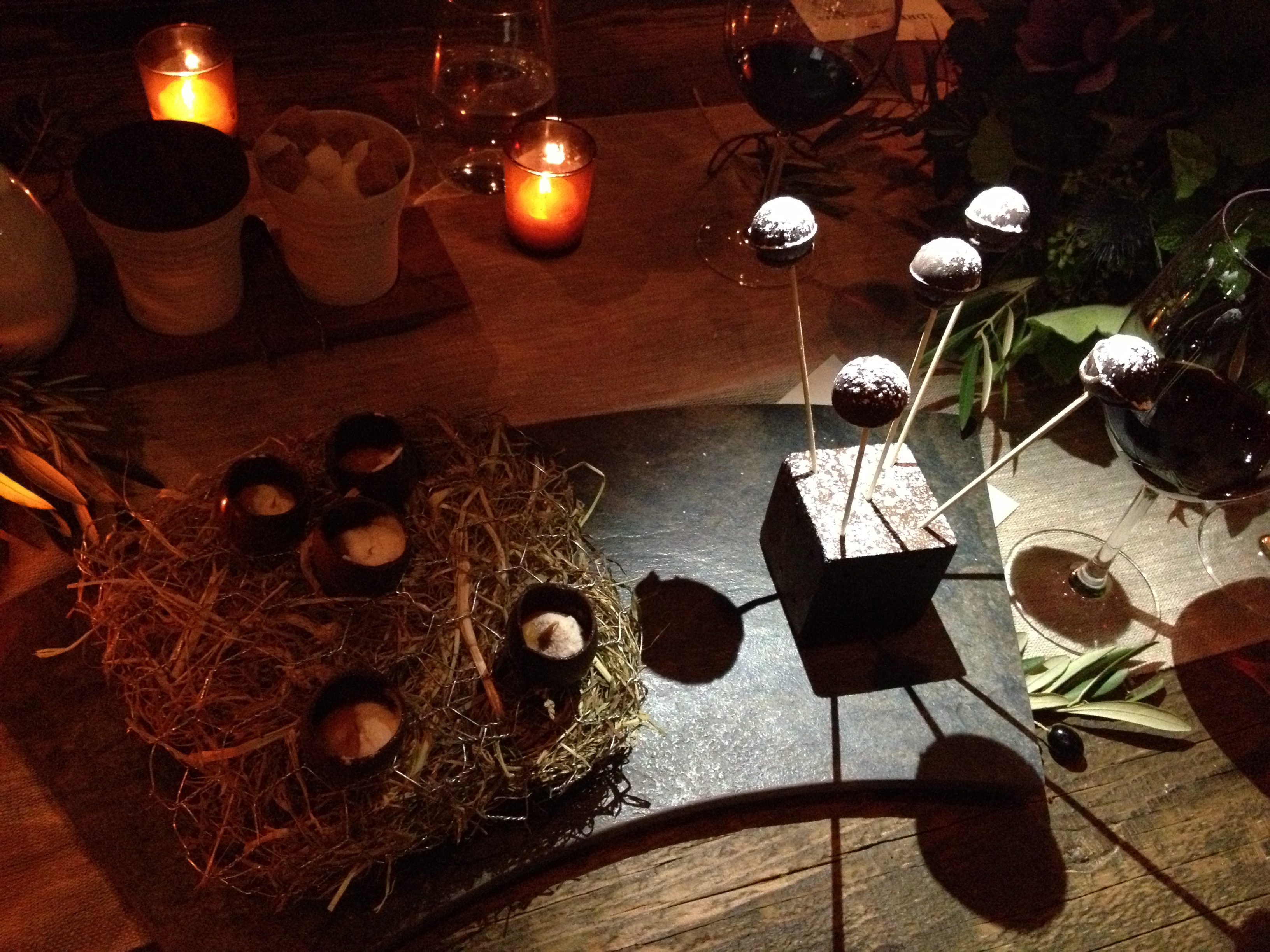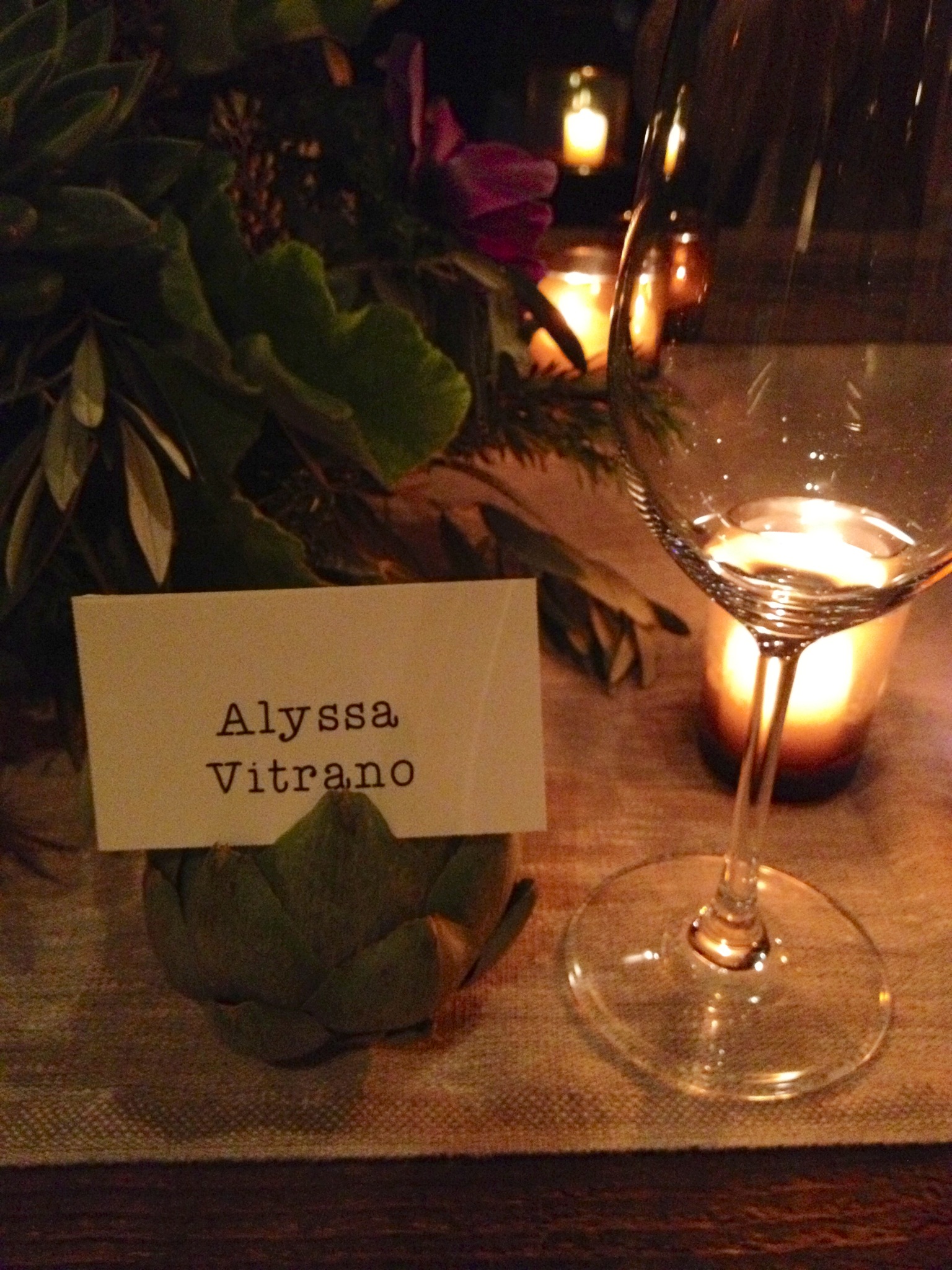 But on to the food and wines! First, a little Martha-type stuff greeted us (seriously, use this name tag in artichoke thing for your next dinner party).