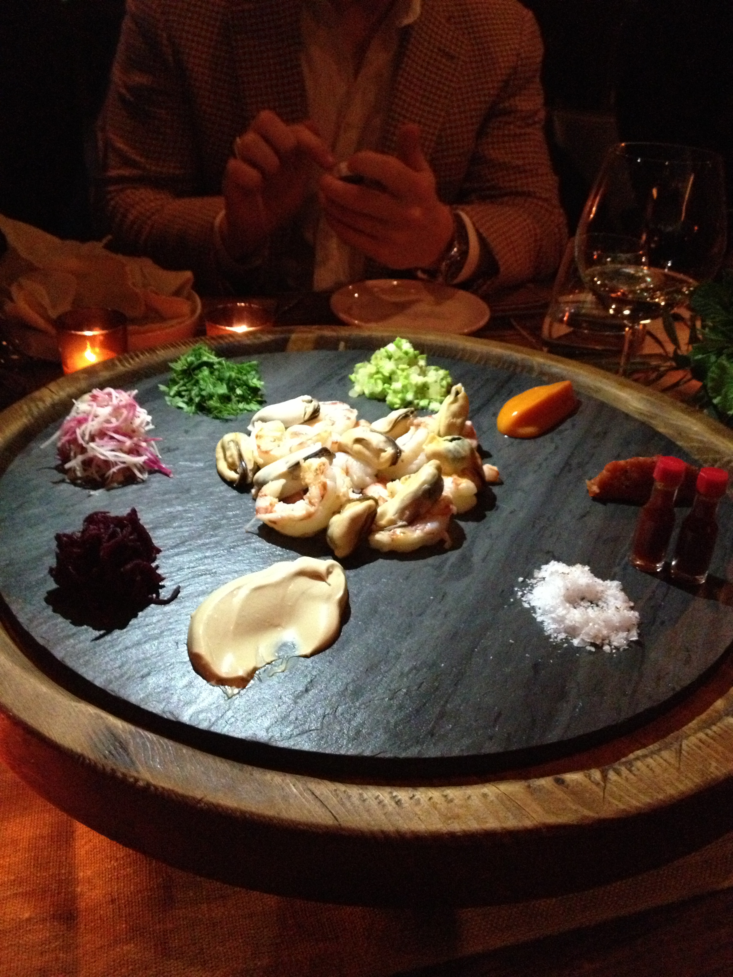 Then this crazy lazy susan of fish fajitas came out and we had the 2011 Central Coast Chardonnay. It was decent and apple-y, nothing super special but an easy drinker.