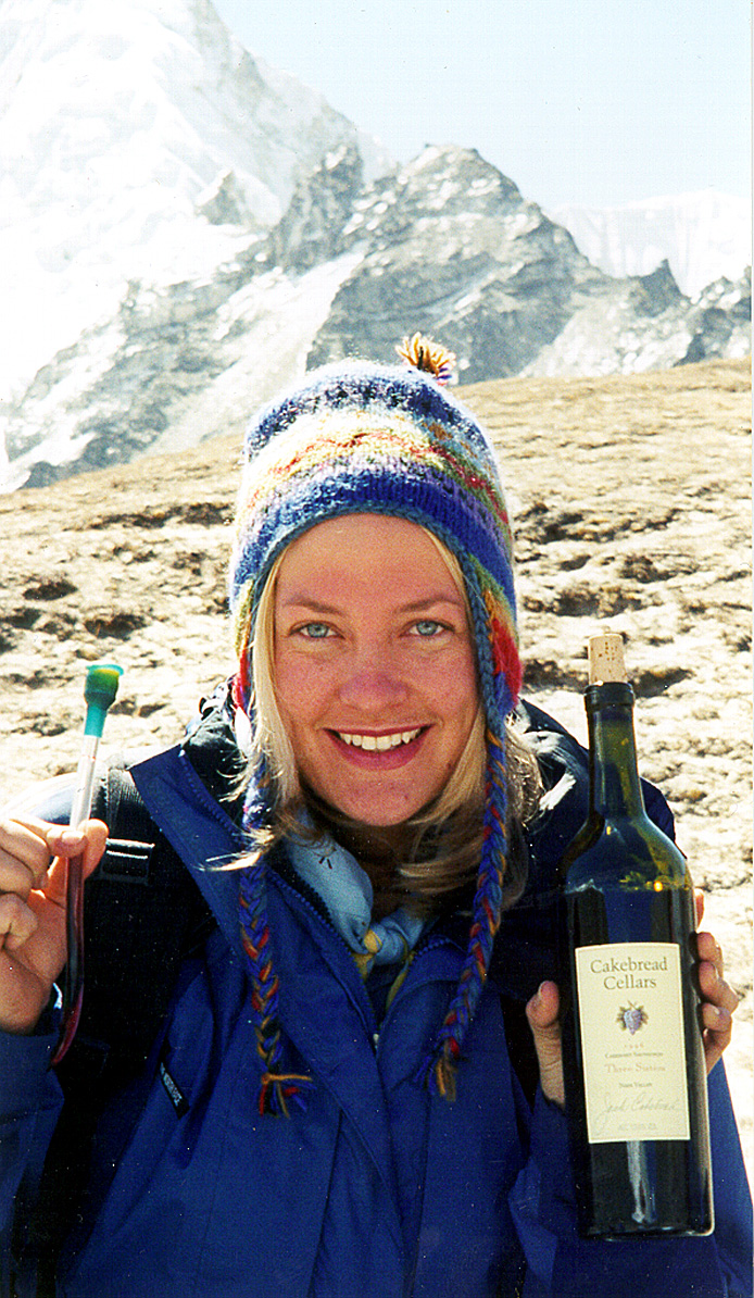 Now it’s an iconic Napa winery that’s celebrating it’s 40th anniversary this fall. Every year they get tons of photos from all over the country of people drinking Cakebread. People have taken it hiking in the Himalayas: 2001Second_Place_Himalayas