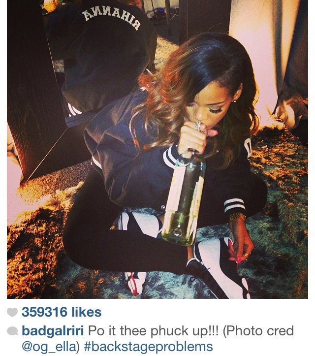 She may be wily about not showing the label, but I can 90% tell it’s Santa Margherita Pinot Grigio. Singers’ backstage riders BAFFLE me. She’s a platinum artist and all she has is a $22 wine. True, maybe this wasn’t on her rider and was just brought by someone. But Riri, tell your friends to start bringing you better wine and you’ll pay them back.