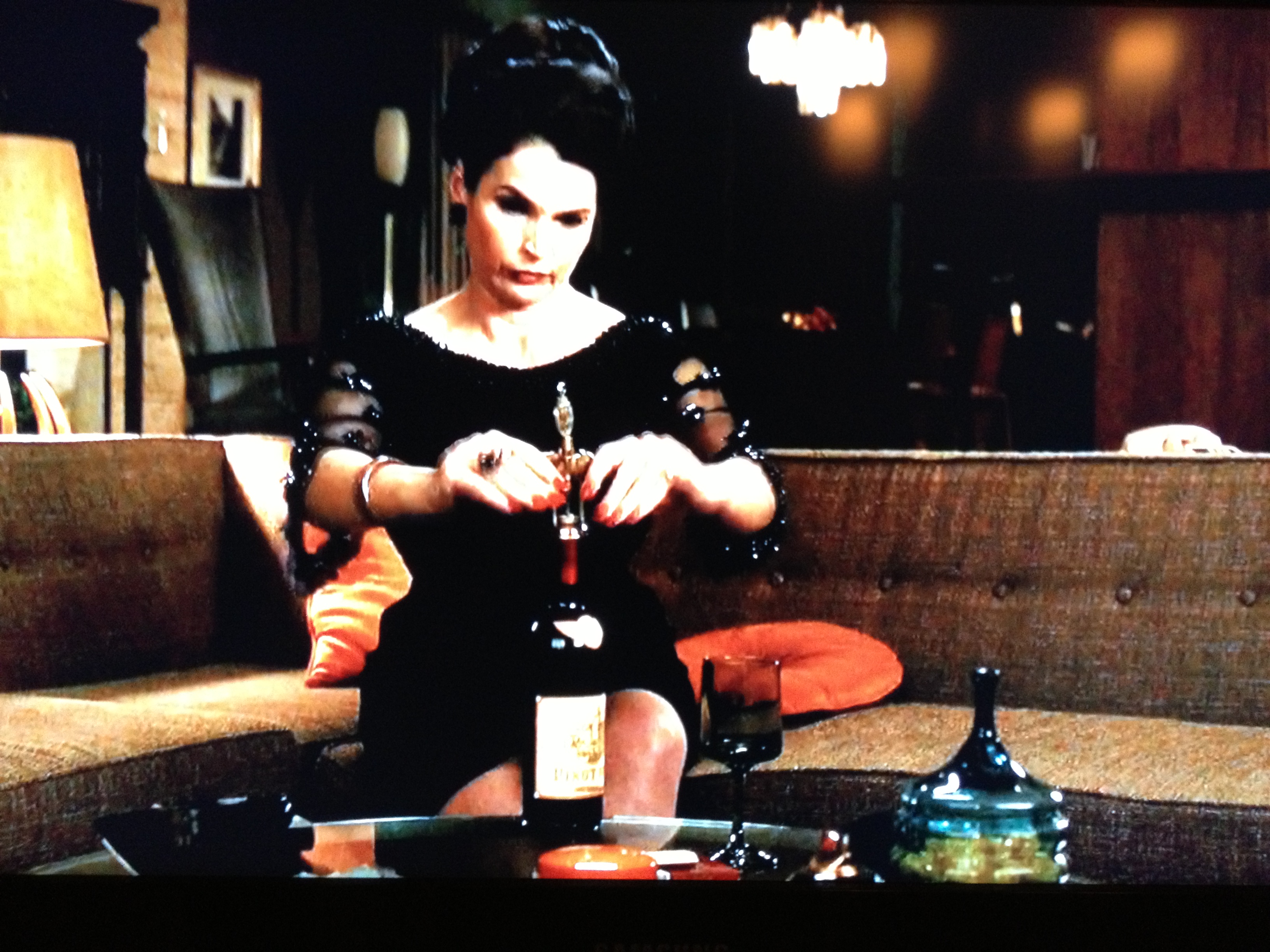 And THEN we get her opening a bottle of red while she has to hear Megan and Don getting it on. Label just says “Pinot Noir” so we can assume it’s Burgundy since I’m sure she only drinks French – it’s not like they were making Pinot in the Willamette Valley in 1968.