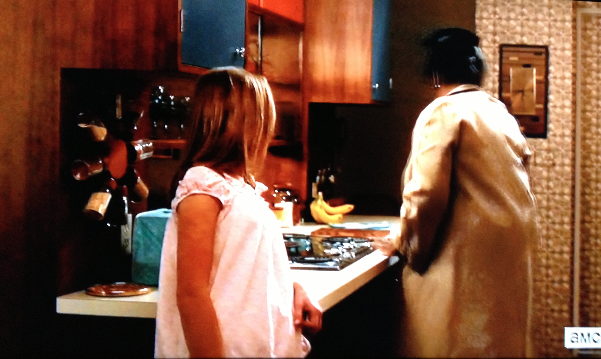 So once again we only got a visual of bottles without any cork popping: the only appearance of wine was the still-unopened bottle on Sylvia’s counter, and this time no one was even in the kitchen to even give hope that it would be opened. And it’s shoved all the way to the right of the shot. Poor little bottle of unproperly-stored red wine…