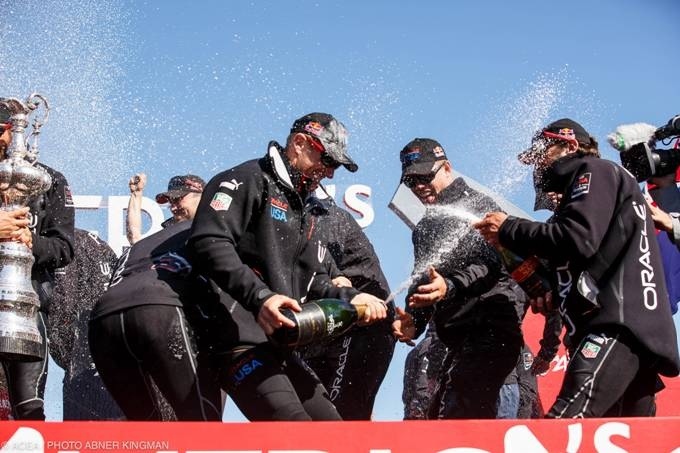 Yesterday Oracle Team USA clocked a massive sailing win of the 34th Annual America’s Cup! How did Skipper Jimmy Spithill and the crew celebrate? With bubbly of course (come on what’d you think, pie???). They popped magnums of Mumm Napa Brut Prestige, which happened to be the official sparkling wine of the 34th America’s Cup. Hope everyone else got some too! Congrats, Oracle, you bunch of saily grapefriends!