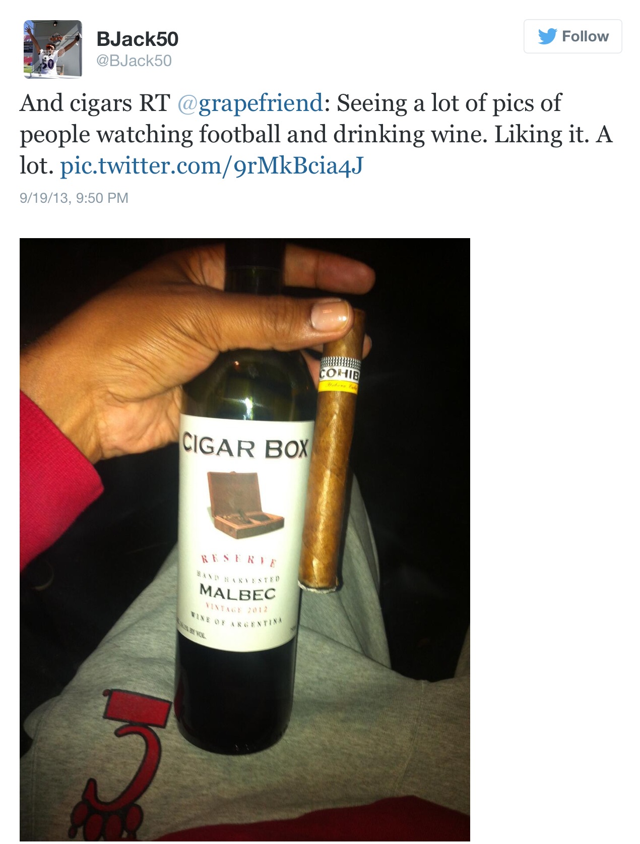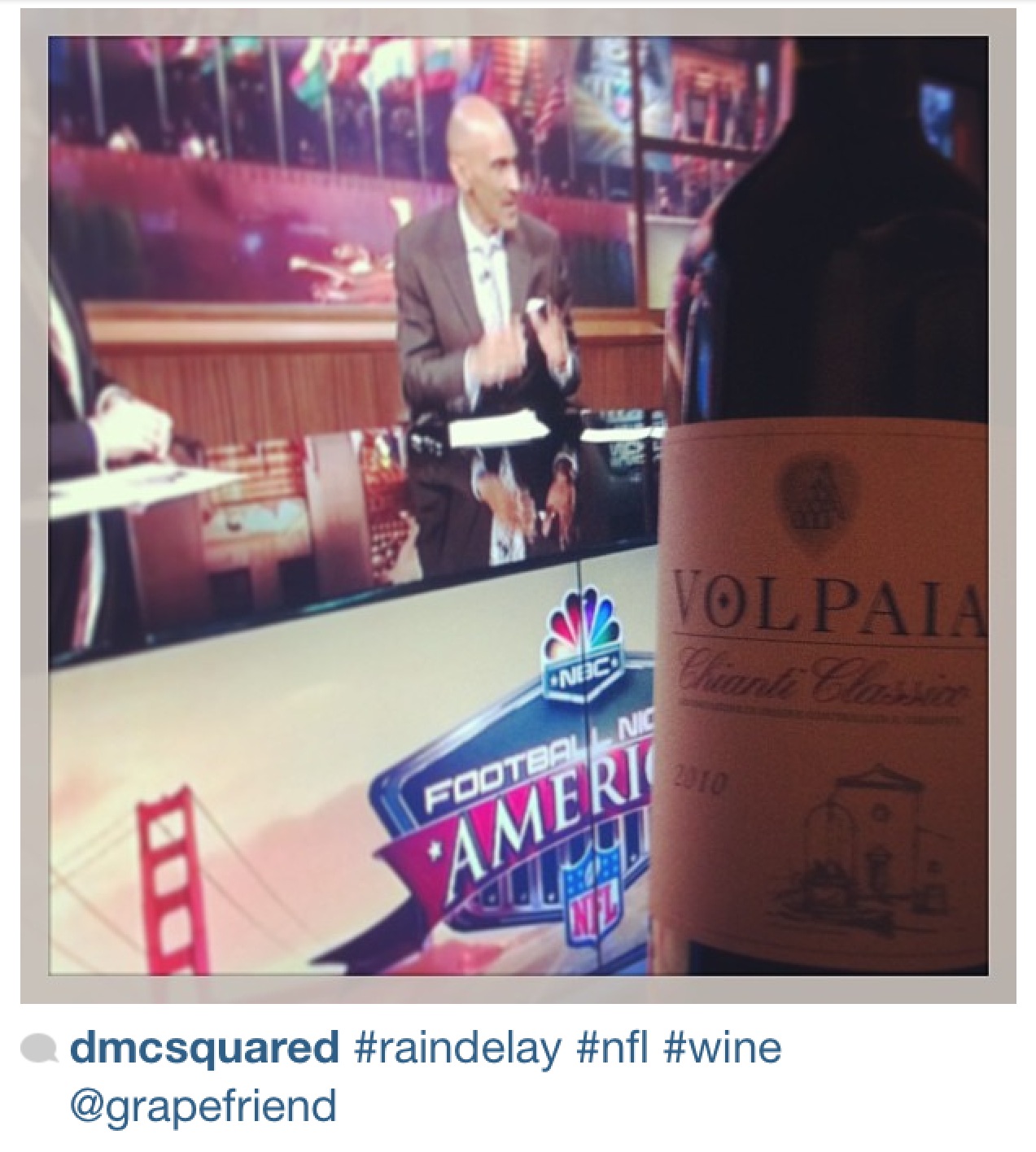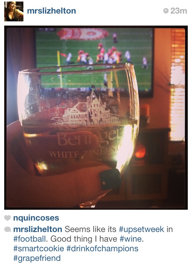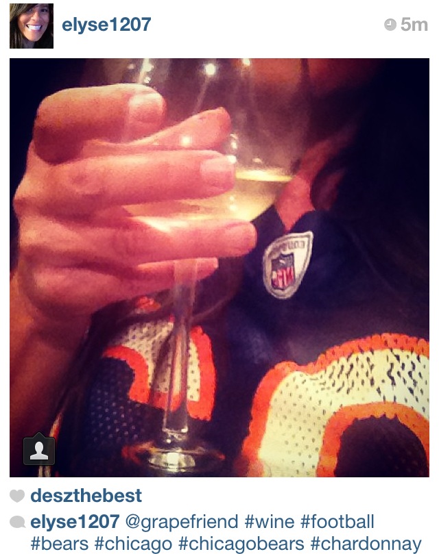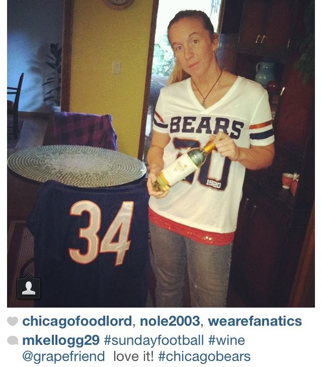 But my winner was Elyse! This pic just has all the elements – wine, gear, and a great stream of other wine and football pics on her page.