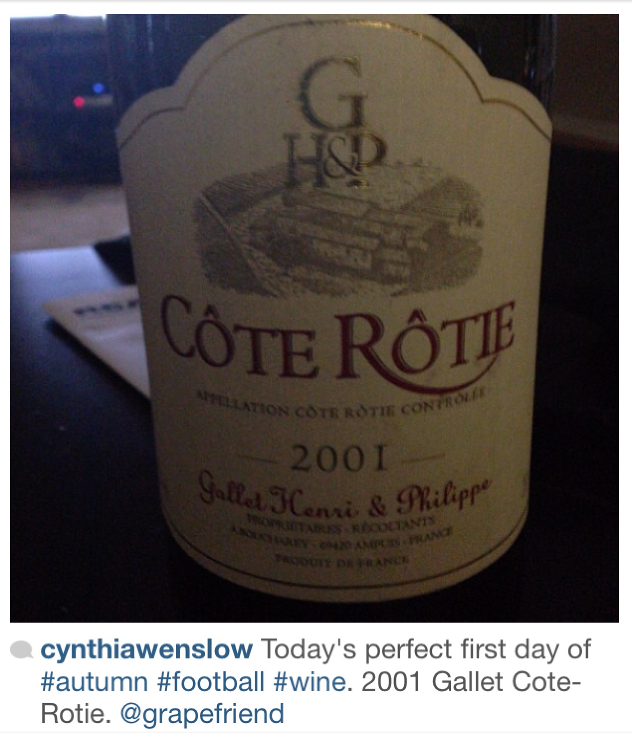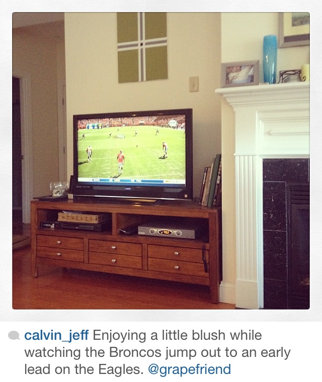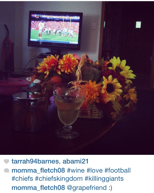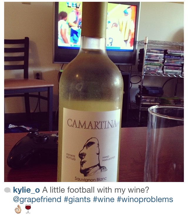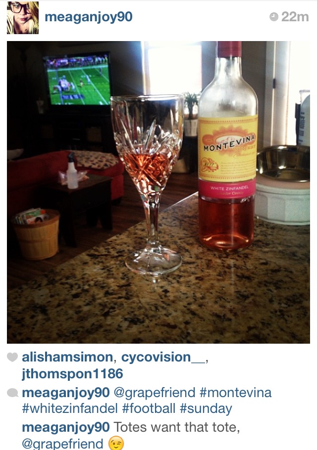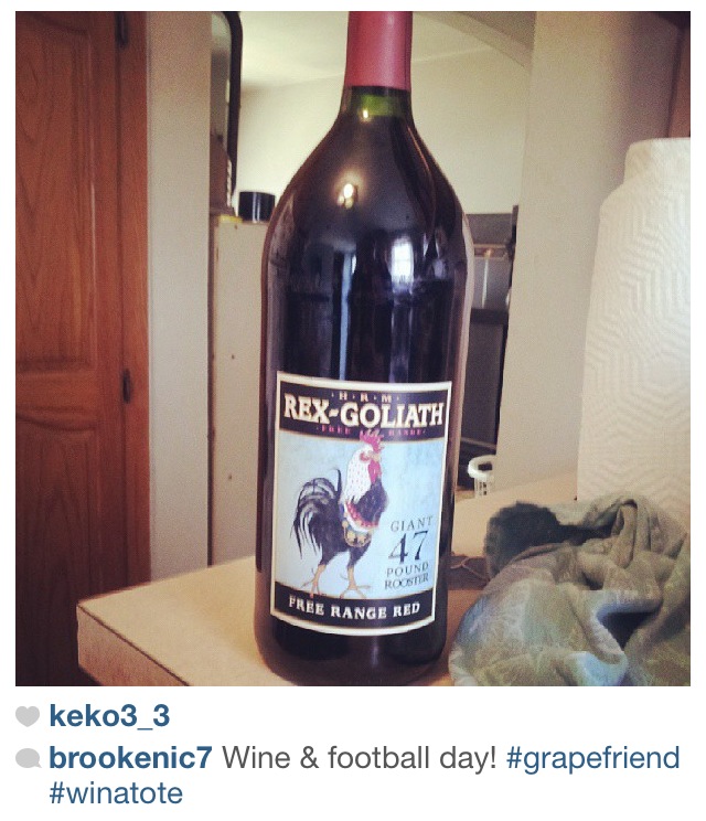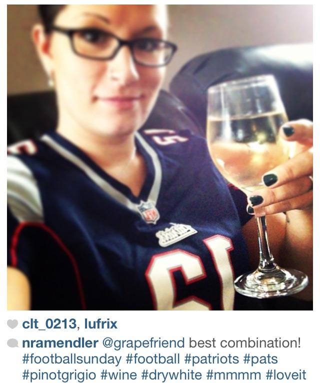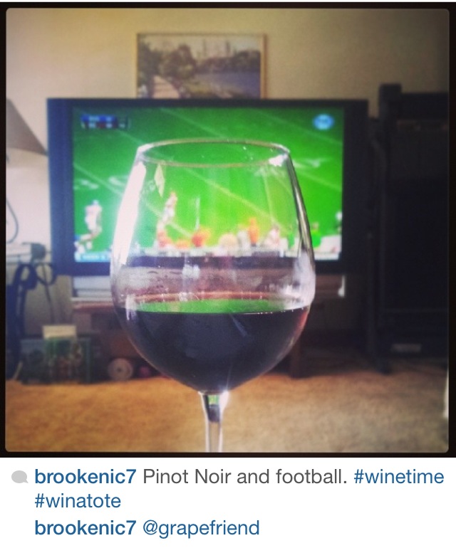 What an awesome weather month we had! Not too hot, not too cold, but every once in a while a chill enough where you wanted to pop open a light red. And most importantly, the return of football which here in grapefriend land means a lot of wine drinking! This month, I did a contest asking people to tag me in their game watching with wine photos to win a wine tote bag, and we got awesome entries. But first, here were a few of my fave regularly-tagged pics.