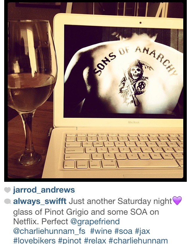 Fall also brought back Sons of Anarchy, and tons of people tag me when they’re drinking wine while watching it. Maybe you wouldn’t think of SOA as a wine-watching show, but you’d be wrong.