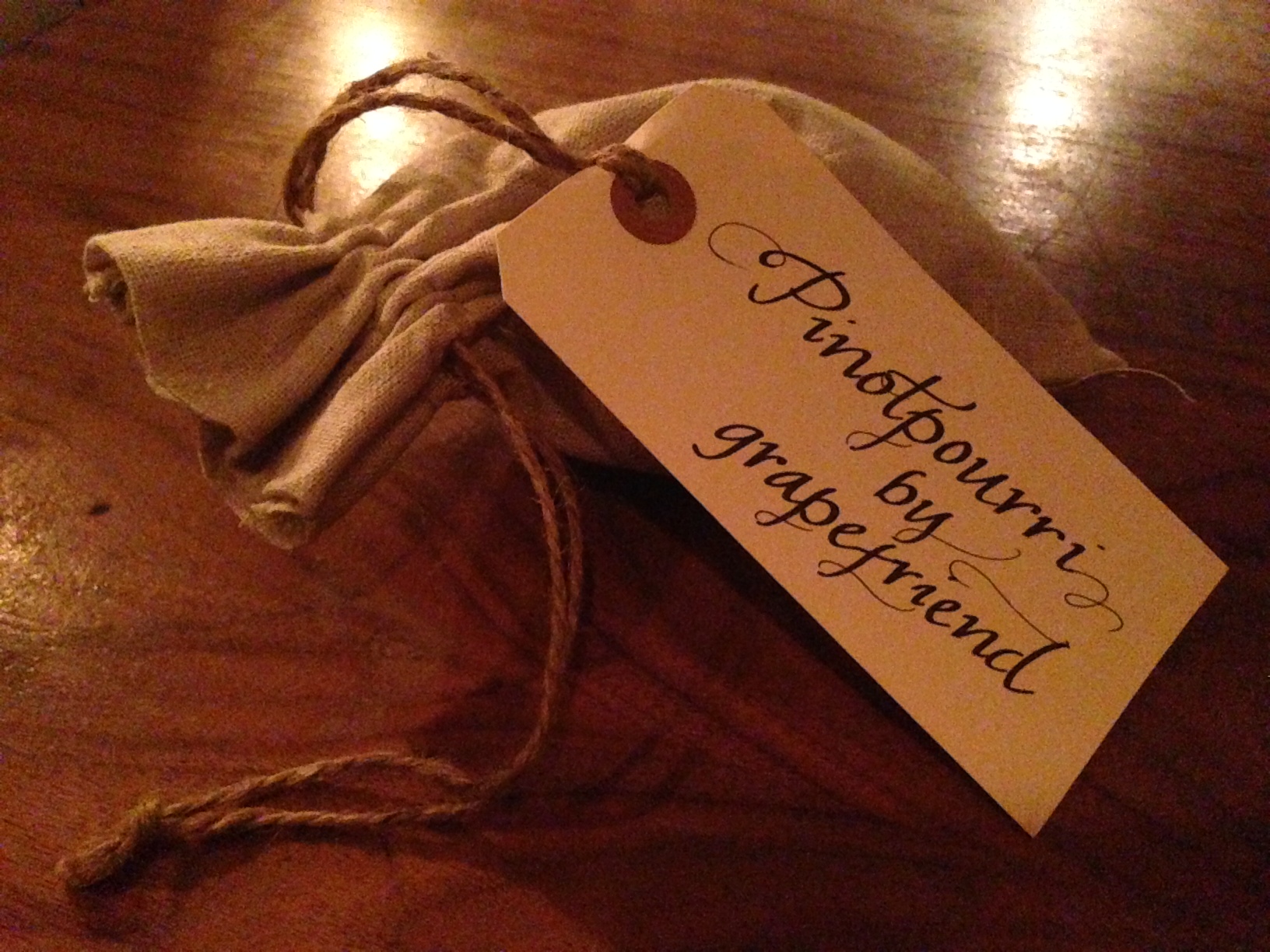 One of the most telling signs that a wine is Pinot when you’re smelling it is a cherry scent, so I put in some black cherry potpourri into my satchel. Then I added a dash of raspberry (I would’ve gone for cranberry which is a more common Pinot fruit, but they didn’t have that). Then I added a dash of oak, which is what Pinot is aged in, and some cedar box and clove which you might get from an older Pinot.