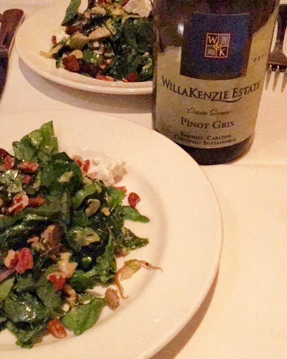 For the second appetizer round, we had the 2016 Willakenzie Pinot Gris. I love Willamette Valley Pinot Gris so was excited for this one. Yellow apple but with a mineral backbone, it was surprisingly amazing as a counterpoint to the shaved Brussels sprouts salad.