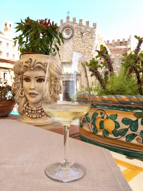 At 33% of all grapes planted in Sicily, this is by far the frontrunner. It’s not, however, the most widely drunk or the most interesting which is why it’s low on my list. Most of it is made to be included in blended wines or as the base for Marsala and vermouth, and is often blended with Carricante to make it a bit better (Carricante on its own isn’t enormously bottled, mostly in Etna Bianco where it has to be at least 60% of the blend). They’re looking to make it a bit better and more interesting (I had one from Caruso & Minini that was organic and had a bit more straw character to it, about $18) but they’re generally still incredibly light and borderline neutral aside from the slightest hint of lemon and white flowers. When it is perfect is when you’re having a light lunch on a hot day, like we did in Taormina.