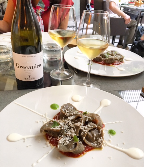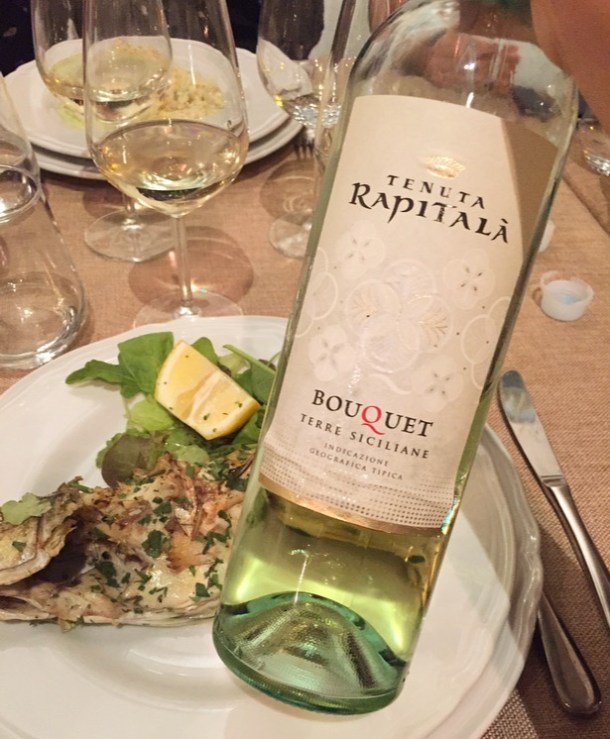 The Rapitalà Bouquet Bianco is a blend of Grillo, Sauvignon and Viognier and had juuuust enough sweetness to complement this fresh local fish, grilled and spritzed with lemon and parsley (one of the best things you can eat in Sicily). I also can’t find this one stateside, but it’s under $15 and just keeps proving what incredible values these wines are.