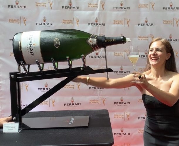 We did some all-day and all-night pouring of Ferrari Brut (all Chardonnay), Ferrari Rosé (60% Pinot Nero and 40% Chardonnay) and Ferrari Perlé (made with specially selected Chardonnay grapes). Pre-show we also had a large-format Balthazar poured from this Vcanter, which is about the funnest party prop ever.