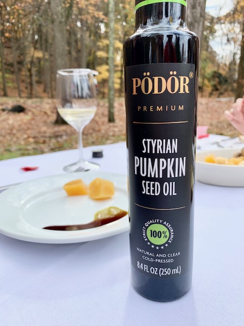 On the trail, we popped open some Schauer Sauvignon Blanc which was as crisp as the fall leaves. Excellent with Styrian pumpkin seeds, which are really common there.